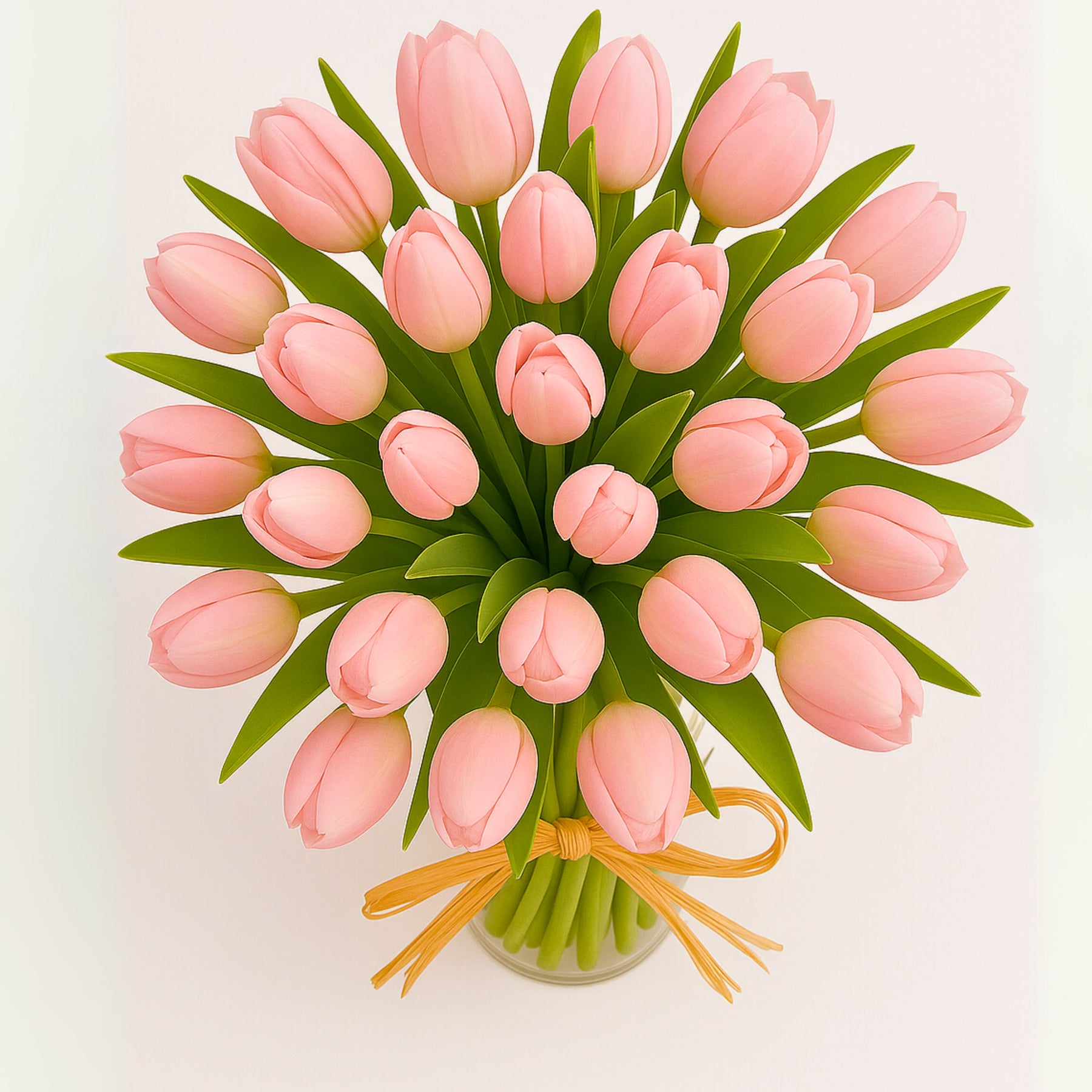Bring timeless beauty and elegance into any space with our Fresh Pink Tulip In Vase from Elegant Flowers. This stunning arrangement features delicate, fresh pink tulips carefully arranged in a crystal-clear vase, tied with a natural raffia bow for a refined touch. Perfect as a thoughtful gift, home décor accent, or centerpiece, this pink tulip bouquet in vase captures sophistication and charm in every petal.